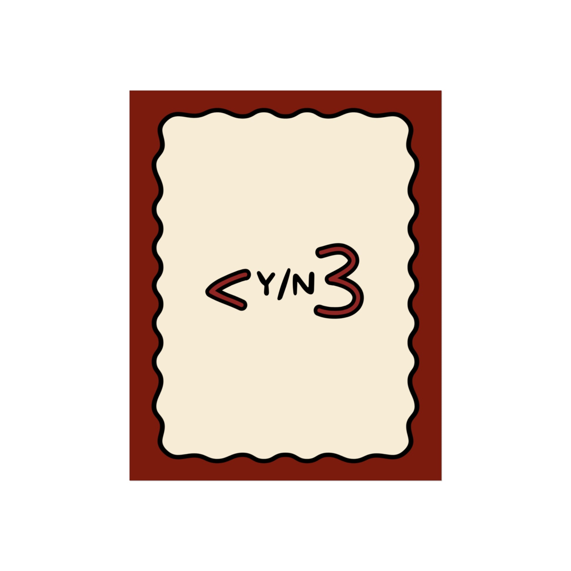 Make a bold statement with our exclusive Y/N Fanfic & Tattoo Inspired Fine Art Poster! Designed and printed in the UK by Chart Attack Studio, this unique poster merges the worlds of fanfiction, internet and tattoo culture, featuring the iconic <3 Y/N text design. Whether you're a fan of the 'fics or simply love bold, homely art, this poster brings that emotional, lighthearted spirit to life. With striking text that speaks to the heart of romantic storytellers, this poster is perfect for anyone who embraces love and doesn't shy away from making a statement.
