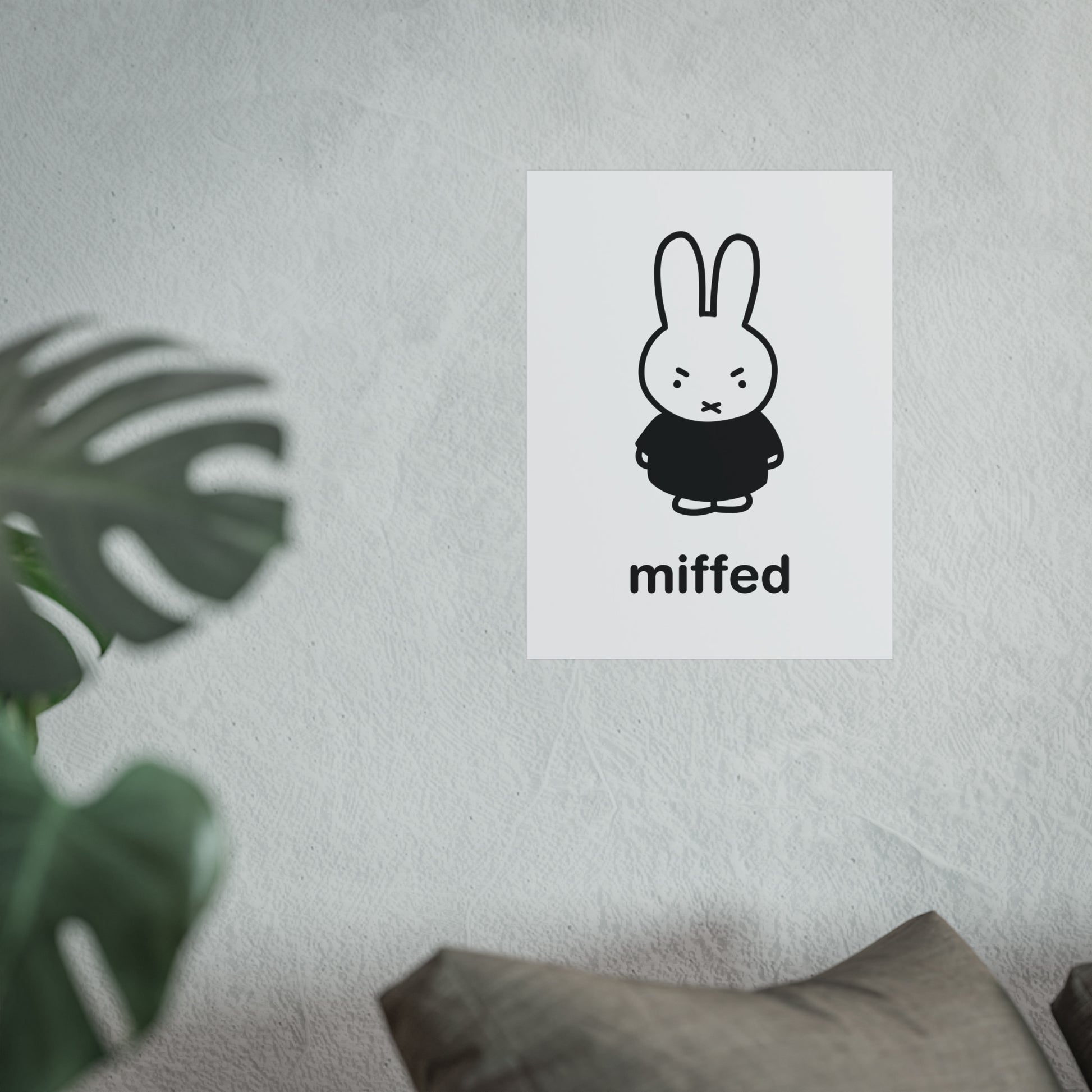 Miffy Inspired Poster, Miffed - Bunny Character, Minimalist Funny Fine Art Poster - Black