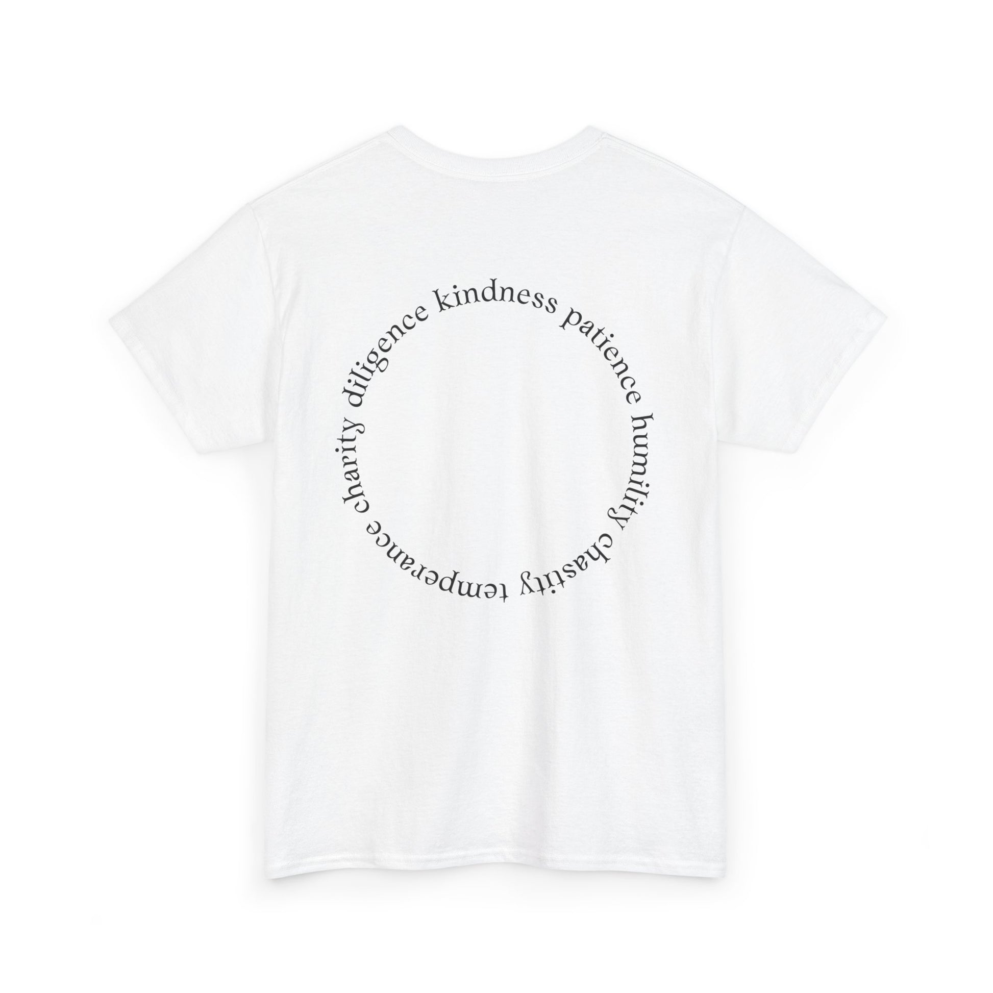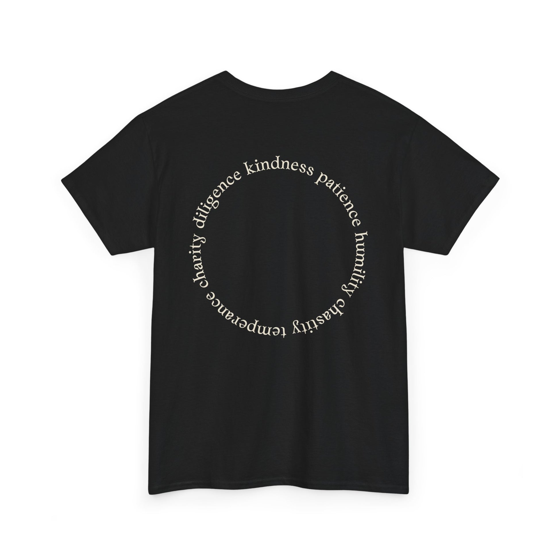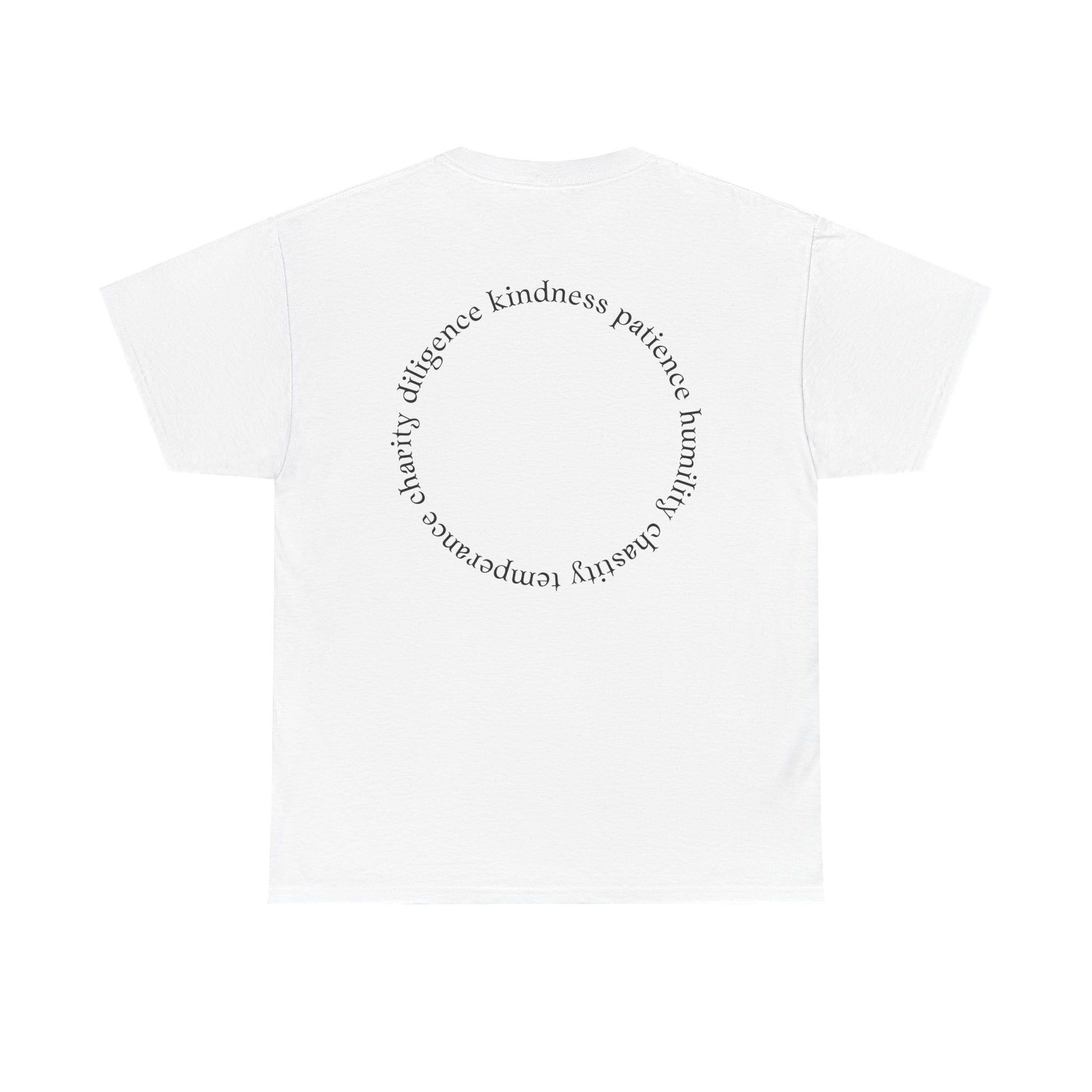 Step into a world of bold, meaningful design with our exclusive Virtues Rose Tee featuring the Seven Virtues. Designed and printed in the UK by Chart Attack Studio, this unique tee blends timeless artwork with modern minimalism. Featuring a striking rose design on the front and clean, impactful text on the back, this shirt an effortless statement piece for those who appreciate art.