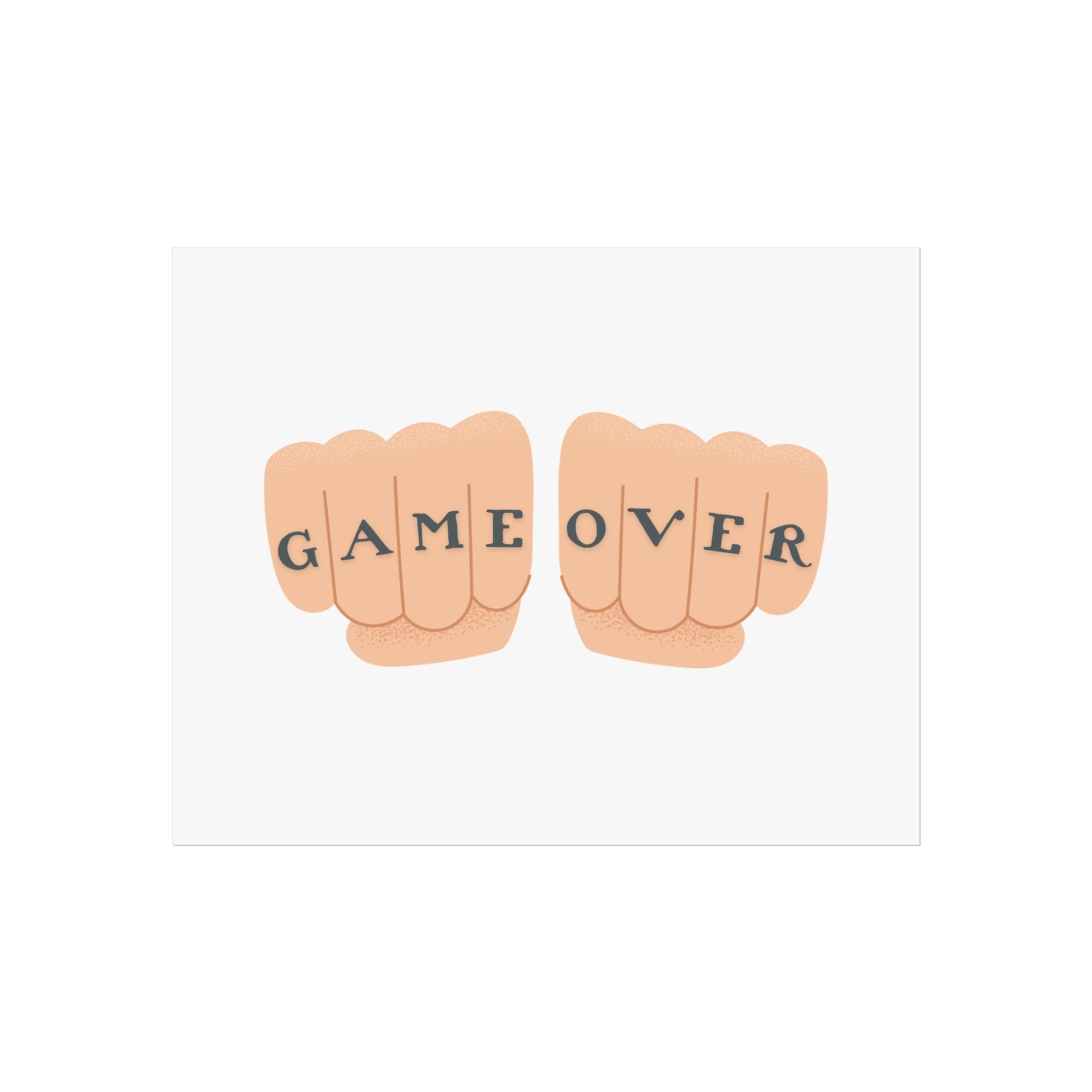 Tattoo Art Poster, Game Over - Knuckle Tat Inspired, Humour Fine Art Poster